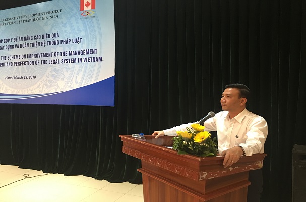 Ngày 23 tháng 3 năm 2018, Bộ Tư pháp tổ chức Cuộc họp “Góp ý Đề án nâng cao hiệu quả quản lý công tác xây dựng và hoàn thiện hệ thống pháp luật”. Cuộc họp thu hút sự tham gia của đại diện đến từ các bộ, ban, ngành, tổ chức chính trị - xã hội, các cơ quan trung ương: Văn phòng Chính phủ, đại diện tổ chức pháp chế các bộ, cơ quan ngang bộ, đại diện giảng viên một số trường Đại học, Viện nghiên cứu, một số đơn vị thuộc Bộ Tư pháp và các báo cáo viên là các chuyên gia có nhiều kinh nghiệm trong xây dựng, soạn thảo văn bản quy phạm pháp luật.