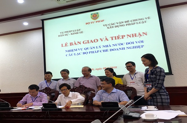 Thực hiện Quyết định số 959/QĐ-BTP ngày 26/4/2018 của Bộ trưởng Bộ Tư pháp quy định chức năng, nhiệm vụ, quyền hạn và cơ cấu tổ chức của Vụ Các vấn đề chung về xây dựng pháp luật, trong đó tại điểm 4 Phần II quy định Vụ Các vấn đề chung về xây dựng pháp luật thực hiện quản lý nhà nước đối với Câu lạc bộ pháp chế doanh nghiệp theo quy định của pháp luật. Bên bàn giao là Vụ Pháp luật dân sự kinh tế (Ông Nguyễn Thanh Tú, Vụ trưởng), bên nhận bàn giao là Vụ Các vấn đề chung về xây dựng pháp luật (Ông Nguyễn Hồng Tuyến, Vụ trưởng), đơn vị được bàn giao là Câu lạc bộ pháp chế doanh nghiệp (Ông Nguyễn Duy Lãm, Chủ nhiệm Câu lạc bộ pháp chế doanh nghiệp). Lễ bàn giao có sự chứng kiến của Thứ trưởng Phan Chí Hiếu, Vụ trưởng Vụ Tổ chức cán bộ, Vụ trưởng Vụ Phổ biến giáo dục pháp luật và Phó Chánh Văn phòng Bộ Tư pháp, lãnh đạo cấp phòng của Vụ Pháp luật dân sự kinh tế và lãnh đạo cấp phòng của Vụ Các vấn đề chung về xây dựng pháp luật.