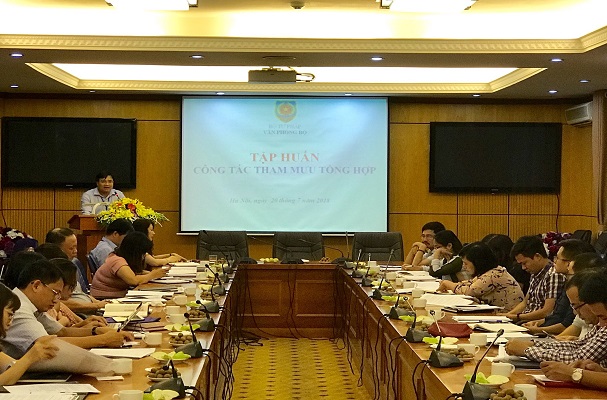 Thực hiện Quyết định số 1492/QĐ-BTP ngày 02/7/2018 của Bộ trưởng Bộ Tư pháp, vừa qua, tại trụ sở Bộ Tư pháp, Văn Phòng Bộ phối hợp với Vụ Tổ chức cán bộ tổ chức lớp bồi dưỡng về công tác tham mưu, tổng hợp năm 2018. Đối tượng tham gia lớp tập huấn là lãnh đạo cấp phòng, chuyên viên thường xuyên thực hiện việc tham mưu cho Thủ trưởng đơn vị thuộc Bộ trong việc trả lời chất vấn của Đại biểu Quốc hội và kiến nghị của cử tri. Đặc biệt lớp tập huấn có mặt đồng chí Nguyễn Bình Khang, Phó Vụ trưởng Vụ Dân nguyện, Văn phòng Quốc hội đã hướng dẫn công tác tiếp nhận, trả lời kiến nghị của cử tri; kỹ năng trả lời kiến nghị của cử tri; các nội dung cần lưu ý trong quá trình thực hiện và thảo luận, giải đáp ý kiến.