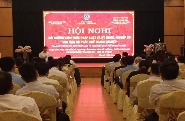 Ngày 30/7/2018, Hiệp hội doanh nghiệp nhỏ và vừa Việt Nam đã phối hợp với Sở Tư pháp Thanh Hóa tổ chức Hội nghị bồi dưỡng kiến thức pháp luật và kỹ năng, nghiệp vụ cho cán bộ pháp chế doanh nghiệp với chủ đề “Những quy định pháp luật về thuế liên quan đến doanh nghiệp”. Hoạt động này được thực hiện với sự hỗ trợ của Chương trình hỗ trợ pháp lý liên ngành dành cho doanh nghiệp giai đoạn 2015-2020, Bộ Tư pháp (Chương trình 585).