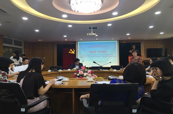 Căn cứ Luật Khoa học và Công nghệ năm 2013 và các văn bản hướng dẫn thi hành về việc thẩm định kinh phí nhiệm vụ khoa học, Viện Khoa học pháp lý đã tổ chức thẩm định kinh phí nhiệm vụ khoa học cấp Bộ năm 2019. Căn cứ Quyết định số 810/QĐ-BTP ngày 04/4/2019 của Bộ trưởng Bộ Tư pháp về việc phê duyệt danh mục và kinh phí thực hiện nhiệm vụ khoa học năm 2019 của Bộ Tư pháp, xét đề nghị của Viện trưởng Viện Khoa học pháp lý, Bộ trưởng Bộ Tư pháp giao nhiệm vụ nghiên cứu đề tài khoa học cấp Bộ năm 2019