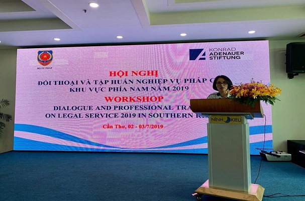 Phát biểu tại Hội nghị, bà Nguyễn Minh Tuyến, Chánh Văn phòng Viện KAS tại Hà Nội đánh giá cao kết quả hợp tác của Viện KAS với Bộ Tư pháp trong thời gian vừa qua. Sau 6 năm triển khai Chương trình hợp tác giữa Bộ Tư pháp Việt Nam với Viện KAS, bà Tuyến cho rằng các diễn đàn do Bộ Tư pháp tổ chức luôn nhận được sự quan tâm, ủng hộ và tham gia của đông đảo Bộ, ngành, địa phương; nội dung chương trình và cách thức tổ chức thực hiện các diễn đàn luôn được nghiên cứu, thiết kế một cách công phu, chất lượng và không ngừng được đổi mới, sáng tạo. Bà Tuyến mong rằng, Viện KAS sẽ tiếp tục duy trì mối quan hệ hợp tác và phát huy ở tầm cao hơn với Bộ Tư pháp Việt Nam trong thời gian tiếp theo.