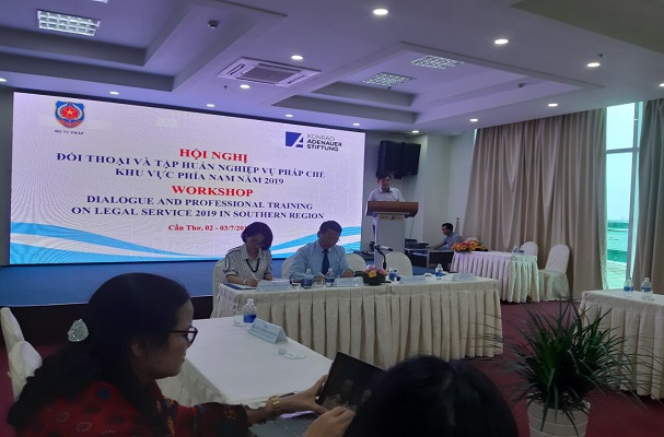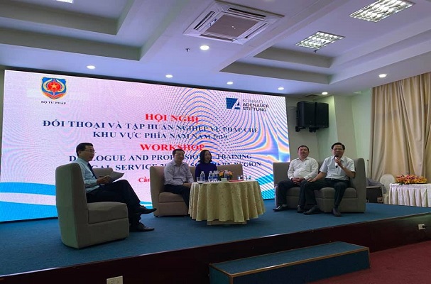 Tại Hội nghị đối thoại, các đại biểu được đối thoại với các khách mời là ông Nguyễn Hồng Tuyến, Vụ trưởng Vụ Các vấn đề chung về xây dựng pháp luật; ông Nguyễn Thanh Bình, Cục trưởng Cục Công tác phía Nam; ông Cao Thanh Sơn, Giám đốc Sở Tư pháp An Giang; bà Phan Quỳnh Dao, Phó Giám đốc Sở Tư pháp Thành phố Cần Thơ để trao đổi, thảo luận về tình hình thực hiện công tác pháp chế và công tác xây dựng của các địa phương 6 tháng đầu năm 2019.