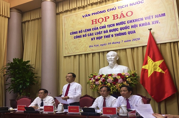 Ngày 10/7/2020, Văn phòng Chủ tịch nước đã tổ chức họp báo công bố Lệnh của Chủ tịch nước về công bố các luật đã được Quốc hội nước Cộng hòa xã hội chủ nghĩa Việt Nam khóa XIV thông qua tại Kỳ họp thứ 9. Họp báo do đồng chí Đào Việt Trung, Ủy vên Trung ương Đảng, Chủ nhiệm Văn phòng Chủ tịch nước chủ trì, cùng với sự tham gia của đại diện các cơ quan chủ trì soạn thảo dự án luật và các cơ quan báo chí đến ghi hình, đưa tin.
