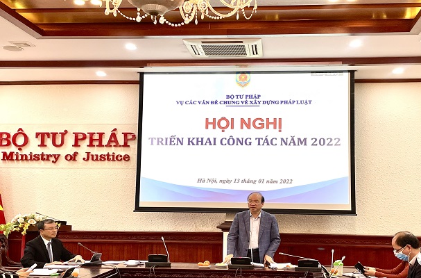 Sáng ngày 13/1, Vụ Các vấn đề chung về xây dựng pháp luật (Vụ CVĐCXDPL) đã tổ chức Hội nghị triển khai công tác năm 2022. Thứ trưởng Bộ Tư pháp Phan Chí Hiếu và Vụ trưởng Vụ Các vấn đề chung về xây dựng pháp luật Nguyễn Hồng Tuyến đồng chủ trì Hội nghị. Tham dự Hội nghị, có đại diện của Vụ Pháp luật Văn phòng Chính phủ, Vụ Pháp chế các Bộ: Tài chính, Quốc phòng, Lao động - Thương binh và Xã hội, Sở Tư pháp Hà Nội, đại diện một số đơn vị thuộc Bộ và toàn thể công chức của Vụ CVĐCXDPL.