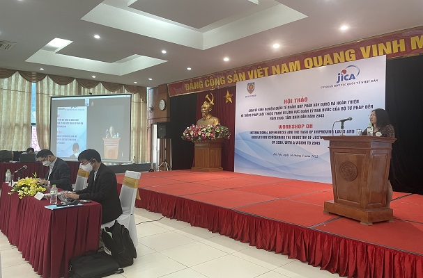 Phát biểu khai mạc Hội thảo, ông Trần Anh Đức, Phó Vụ trưởng Vụ Các vấn đề chung xây dựng pháp luật, Bộ Tư pháp nhấn mạnh: Công tác xây dựng, hoàn thiện hệ thống pháp luật có vai trò hết sức quan trọng trong công cuộc xây dựng Nhà nước pháp quyền, hoàn thiện thể chế kinh tế thị trường và hội nhập quốc tế. Đây là nhiệm vụ được Đảng, Quốc hội, Chính phủ, các bộ, ngành, các địa phương đặc biệt quan tâm. Trong những năm qua, nhiều chủ trương, chính sách quan trọng đã được ban hành nhằm từng bước hoàn thiện hệ thống pháp luật, đồng thời đề ra nhiều biện pháp bảo đảm cho pháp luật được thi hành nghiêm minh trên thực tế. Một trong những tài liệu quan trọng làm căn cứ xây dựng và hoàn thiện hệ thống pháp luật chính là Nghị quyết số 48-NQ/TW ngày 24/5/2005 của Bộ Chính trị về Chiến lược xây dựng, hoàn thiện hệ thống pháp luật Việt nam đến năm 2010, định hướng đến năm 2020; tại Kết luận số 83-KL/TW ngày 29/7/2020 của Bộ Chính trị về tổng kết việc thực hiện Nghị quyết số 48-NQ/TW, Bộ Chính trị đã có chỉ đạo về việc tập trung thực hiện một số nội dung về xây dựng hoàn thiện hệ thống pháp, trong đó có những chỉ đạo, yêu cầu rất quan trọng, cụ thể như: (i) Xác định lĩnh vực cần ưu tiên hoàn thiện hệ thống pháp luật, tập trung vào thể chế hóa Nghị quyết Đại hội Đảng lần thứ XIII, những nội dung đã được đề ra trong Nghị quyết số 48 và các văn kiện của Đảng nhưng chưa được thể chế hóa và những vấn đề mới nảy sinh do thực tiễn đòi hỏi; (ii) Hoàn thiện quy trình xây dựng pháp luật, quy định rõ trách nhiệm, sự phối hợp chặt chẽ của các cơ quan được giao chủ trì soạn thảo, thẩm định, thẩm tra; phát huy vai trò của Mặt trận Tổ quốc trong việc tham gia xây dựng pháp luật; củng cố, kiện toàn tổ chức pháp chế, tổ chức làm công tác pháp luật; (iii) Đẩy mạnh nghiên cứu lý luận về pháp luật gắn với thực tiễn thi hành pháp luật và đổi mới tư duy pháp lý phù hợp với yêu cầu xây dựng, bảo vệ và phát triển đất nước trong tình hình mới; (iv) Chú trọng nâng cao hiệu lực, hiệu quả tổ chức thi hành pháp luật; (v) Nghiên cứu, xây dựng trình Ban Chấp hành Trung ương Đảng khóa XIII ban hành Nghị quyết về xây dựng và hoàn thiện Nhà nước pháp quyền xã hội chủ nghĩa, trong đó có nội dung về Chiến lược pháp luật Việt Nam đến năm 2030, tầm nhìn đến năm 2045.