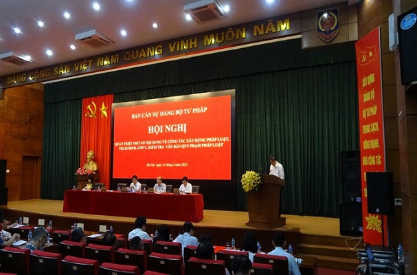 Ngoài ra, thời gian qua, Quốc hội, Chủ tịch Quốc hội, Chính phủ, Thủ tướng Chính phủ cũng đã có nhiều chỉ đạo, kết luận nhằm nâng cao hơn nữa chất lượng công tác xây dựng, hoàn thiện thể chế, pháp luật, tăng cường trách nhiệm của người đứng đầu trong công tác XDPL. Trong bối cảnh đó, Ban cán sự đảng Bộ Tư pháp tổ chức Hội nghị nhằm quán triệt tới toàn thể cán bộ, công chức các đơn vị XDPL, lãnh đạo các đơn vị thuộc Bộ về chủ trương, đường lối của Đảng trong công tác XDPL.