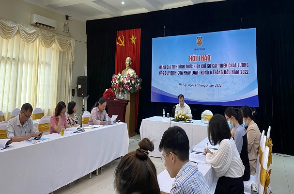 Tại Hội thảo, đại diện Vụ Các vấn đề chung về xây dựng pháp luật, Bộ Tư pháp đã trình bày dự thảo Báo cáo tình hình triển khai thực hiện Chỉ số cải thiện chất lượng các quy định của pháp luật trong 6 tháng đầu năm 2022. Theo đó, trong 6 tháng đầu năm 2022, công tác xây dựng văn bản quy phạm pháp luật, cải thiện chất lượng các quy định của pháp luật, của các bộ, ngành, địa phương đã đạt được nhiều kết quả tích cực trên tất cả các mặt như chỉ đạo, điều hành; hoàn thiện pháp luật về xây dựng văn bản quy phạm pháp luật; lập đề nghị xây dựng văn bản quy phạm pháp luật; xây dựng, ban hành văn bản quy phạm pháp luật; rà soát, kiểm tra văn bản quy phạm pháp luật... Những kết quả nêu trên đã góp phần tích cực vào việc thể chế hóa các chủ trương, đường lối của Đảng, nội luật hóa các điều ước, cam kết quốc tế mà Việt Nam là thành viên, cụ thể hóa các quy định của luật, pháp lệnh, đưa luật, pháp lệnh nhanh chóng đi vào cuộc sống, góp phần thực hiện thắng lợi các nhiệm vụ phát triển kinh tế - xã hội của đất nước; hỗ trợ người dân, doanh nghiệp ứng phó với dịch bệnh Covid-19; ổn định kinh tế vĩ mô, kiểm soát lạm phát; đẩy mạnh cải cách hành chính và phòng, chống tham nhũng, lãng phí; cải thiện môi trường kinh doanh; mở rộng và nâng cao hiệu quả công tác đối ngoại và hội nhập quốc tế. Đồng thời, dự thảo Báo cáo cũng chỉ rõ những tồn tại, hạn chế, nguyên nhân của công tác xây dựng văn bản quy phạm pháp luật, cải thiện chất lượng các quy định của pháp luật và đề xuất, kiến nghị đối với Chính phủ, Thủ tướng Chính phủ, các bộ, ngành, địa phương để tiếp tục thực hiện các giải pháp cải thiện Chỉ số cải thiện chất lượng các quy định của pháp luật của Việt Nam trong thời gian tới.