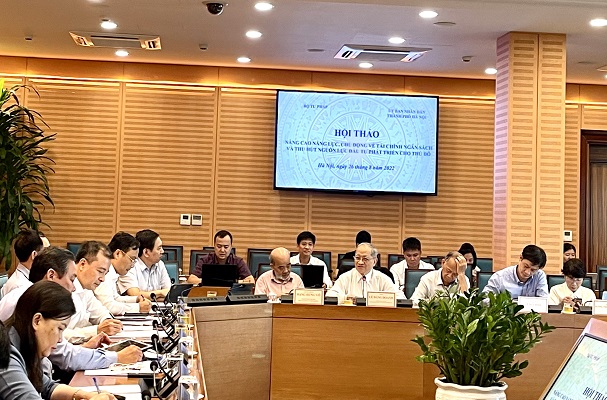 Để tiếp tục thực hiện Kế hoạch nghiên cứu, đề xuất chính sách và hoàn thiện Hồ sơ đề nghị xây dựng Luật Thủ đô (sửa đổi), sáng ngày 26/8/2022, Bộ Tư pháp đã phối hợp với Ủy ban nhân dân Thành phố Hà Nội tổ chức Hội thảo “Nâng cao năng lực tài chính - ngân sách, huy động nguồn lực cho đầu tư phát triển Thủ đô” với sự tham gia của ban, bộ, ngành Trung ương, các chuyên gia, nhà khoa học, các cơ quan thuộc Thành ủy, Hội đồng nhân dân, Ủy ban Mặt trận Tổ quốc Việt Nam Thành phố Hà Nội. Đồng chủ trì Hội thảo có ông Lê Hồng Sơn - Phó Chủ tịch thường trực Ủy ban nhân dân thành phố Hà Nội và ông Nguyễn Hồng Tuyến - Vụ trưởng Vụ Các vấn đề chung về xây dựng pháp luật, Bộ Tư pháp.