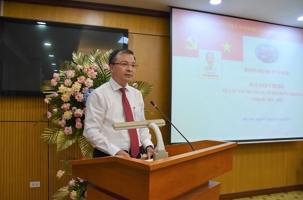 Báo cáo tại Đại hội, đồng chí Nguyễn Hồng Tuyến - Bí thư Chi bộ, Vụ trưởng cho biết, trong nhiệm kỳ 2020 - 2022, Chi ủy đã lãnh đạo các đảng viên, công chức nỗ lực phấn đấu thực hiện thắng lợi các nhiệm vụ, chỉ tiêu đề ra. Về công tác Đảng, Chi bộ, cấp ủy đã tổ chức sinh hoạt Đảng được nề nếp, chất lượng hơn. Năng lực và sức chiến đấu của Chi bộ ngày càng được phát huy có hiệu quả, thể hiện tinh thần trách nhiệm trong sinh hoạt, học tập, công tác của từng đảng viên. Chi bộ đã lãnh đạo phòng ban và các đoàn thể nỗ lực, phấn đấu trong việc đã lãnh đạo, chỉ đạo thực hiện tốt các nhiệm vụ chính trị được giao. Những kết quả đạt được có ý nghĩa quan trọng đối với công tác chỉ đạo, điều hành; tăng cường trách nhiệm, kỷ cương trong công tác xây dựng, thi hành pháp luật; góp phần thực hiện thắng lợi các nhiệm vụ trọng tâm, Chương trình hành động của Bộ, Ngành Tư pháp.