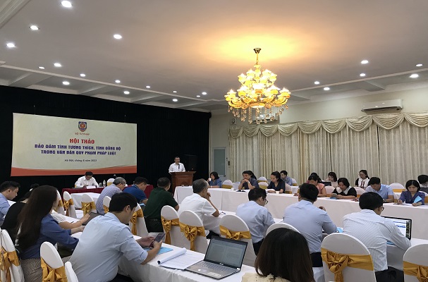 Phát biểu khai mạc Hội thảo, đồng chí Nguyễn Hồng Tuyến, Vụ trưởng Vụ Các vấn đề chung về xây dựng pháp luật, Bộ Tư pháp đánh giá Luật Ban hành văn bản quy phạm pháp luật năm 2015 (sửa đổi, bổ sung năm 2020) cùng với Nghị định số 34/2016/NĐ-CP ngày 14/5/2016 của Chính phủ quy định chi tiết một số điều và biện pháp thi hành Luật Ban hành văn bản quy phạm pháp luật (sửa đổi, bổ sung năm 2020) được ban hành đã đánh dấu một bước đổi mới nhằm nâng cao chất lượng văn bản quy phạm pháp luật ở Việt Nam. Luật Ban hành văn bản quy phạm pháp luật và các Nghị định quy định chi tiết, hướng dẫn thi hành Luật đã quy định về nguyên tắc, thẩm quyền, hình thức, trình tự, thủ tục xây dựng văn bản quy phạm pháp luật. Để góp phần nâng cao chất lượng soạn thảo, thẩm định văn bản quy phạm pháp luật, Bộ Tư pháp tổ chức Hội thảo bảo đảm tính tương thích, tính đồng bộ trong văn bản quy phạm pháp luật nhằm thảo luận, đánh giá về kết quả đạt được, chỉ ra tồn tại, hạn chế, nguyên nhân, từ đó đề xuất giải pháp bảo đảm tốt hơn tính đồng bộ của văn bản quy phạm pháp luật với hệ thống pháp luật và tính tương thích với các điều ước quốc tế mà Cộng hòa xã hội chủ nghĩa Việt Nam là thành viên.