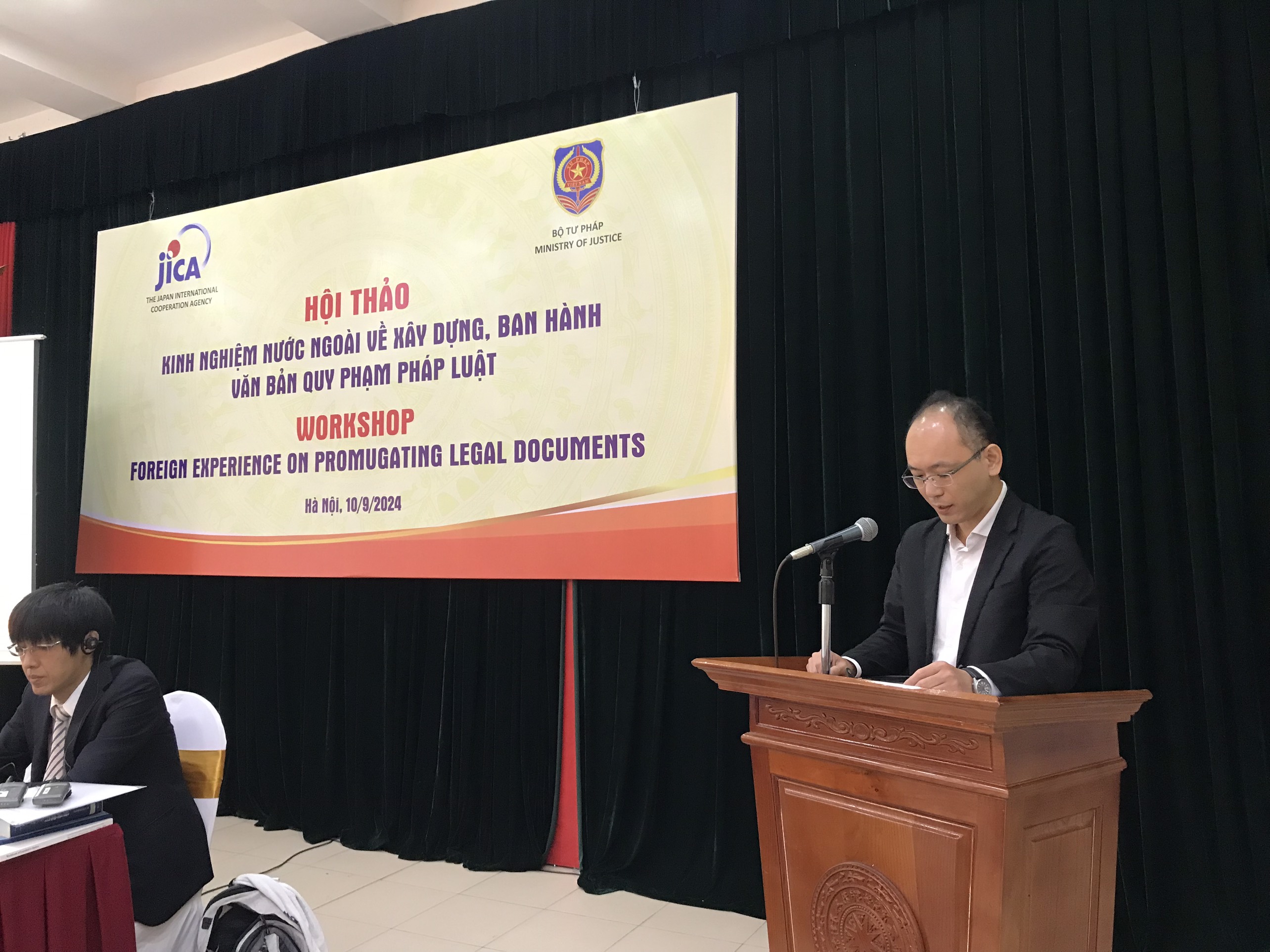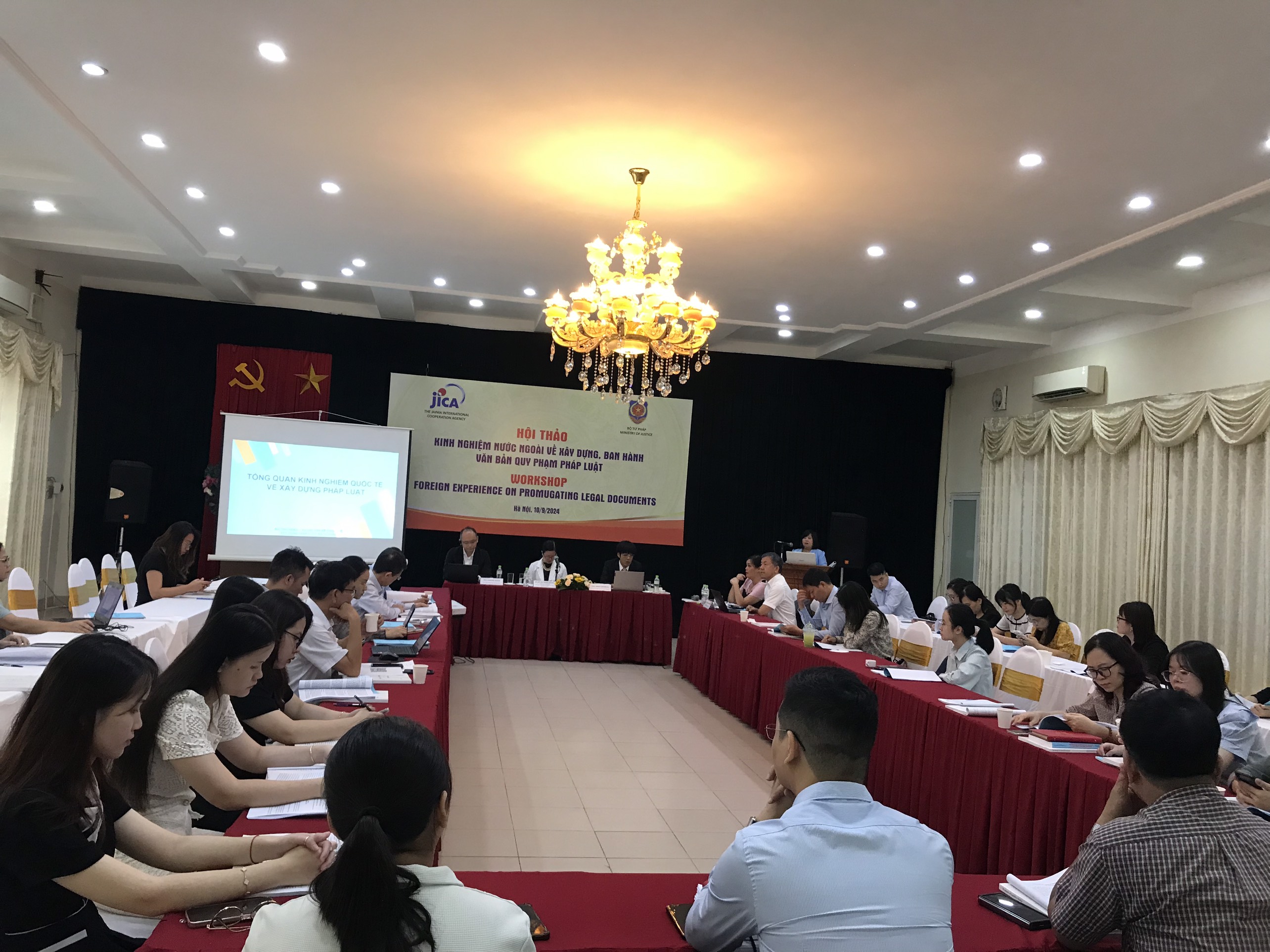 Trong khuôn khổ hoạt động của Dự án hài hòa hóa pháp luật hiện hành và thống nhất áp dụng pháp luật (Dự án JICA), sáng ngày 10/9/2024 tại Hà Nội, Bộ Tư pháp phối hợp với Dự án JICA tổ chức Hội thảo “Kinh nghiệm nước ngoài về xây dựng, ban hành văn bản quy phạm pháp luật”. Mục đích của Hội thảo nhằm trao đổi, thảo luận, chia sẻ kinh nghiệm nước ngoài về xây dựng văn bản pháp luật để từ đó rút ra các bài học kinh nghiệm, đề xuất kiến nghị hoàn thiện quy trình xây dựng và ban hành văn bản quy phạm pháp luật ở Việt Nam.
