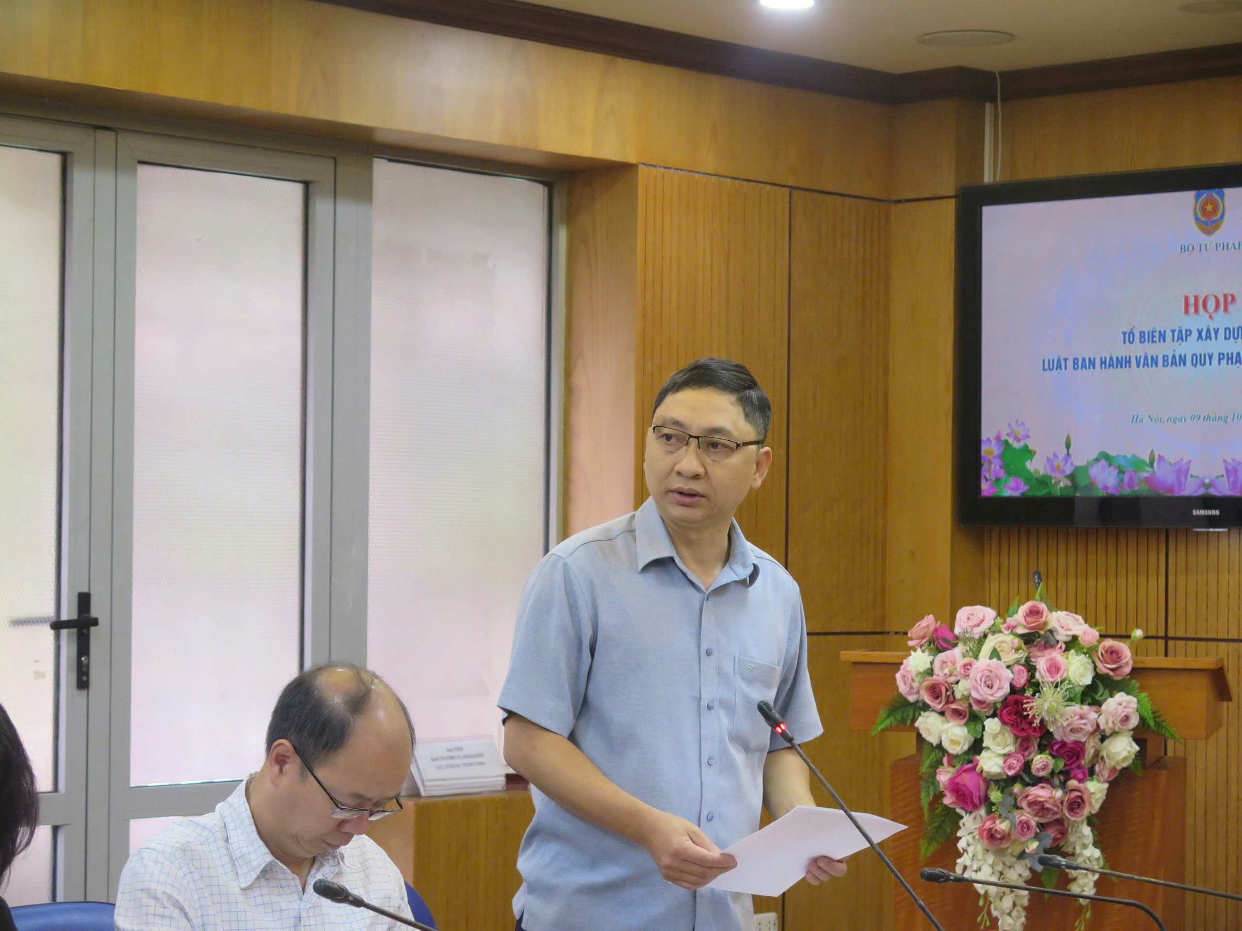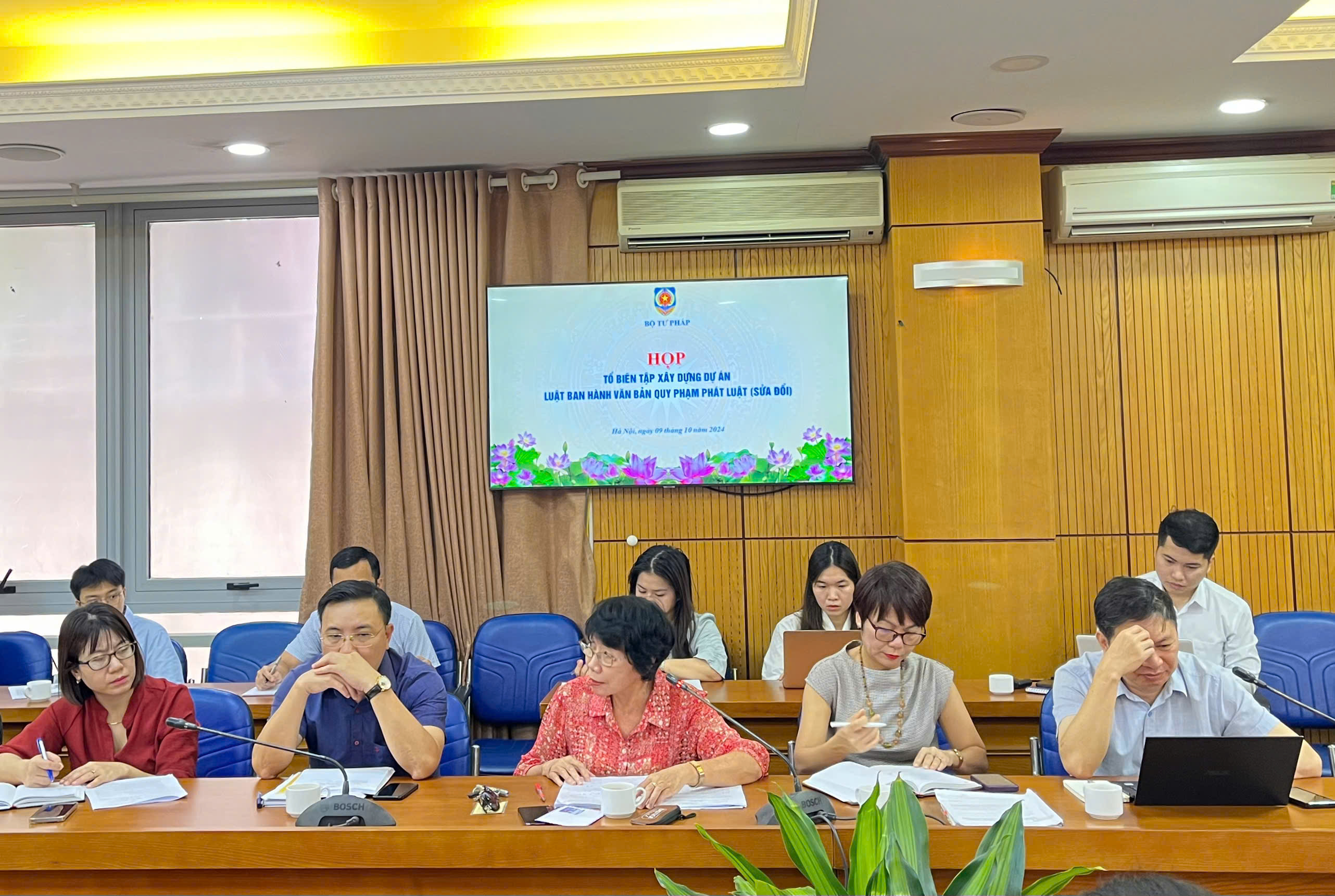 Ngày 9/10/2024, Bộ Tư pháp đã tổ chức cuộc họp thành viên Tổ biên tập dự án Luật Ban hành văn bản quy phạm pháp luật (sửa đổi). Cuộc họp do Thứ trưởng Trần Tiến Dũng, Phó trưởng Ban soạn thảo, Tổ trưởng Tổ biên tập chủ trì, với sự tham dự của các thành viên Tổ biên tập đến từ các bộ, ngành, địa phương và một số chuyên gia, nhà khoa học.